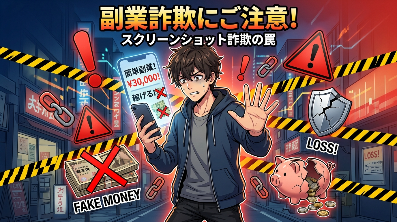 この記事では、スクショ副業が危険な理由、最初に報酬が出ても信用してはいけない理由、そして既に登録してしまった場合の対処法をまとめています。副業初心者が詐欺から身を守り、本当に安全な副業へ進むための知識をお伝えします。